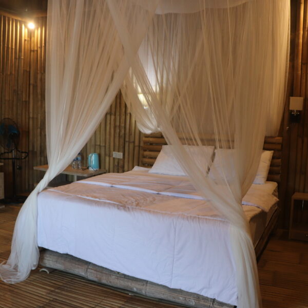 Step into our bamboo sanctuary and feel the gentle caress of the breeze, a reminder of life’s interconnectedness. Our lodges blend seamlessly with the landscape, reflecting the harmony between humanity and nature. Relax on the veranda, immersed in serenity, with views of the turquoise ocean sparkling under the sun. At night, enjoy the celestial display of stars and moonlight. Amidst mangroves and ocean, find sanctuary for the soul.